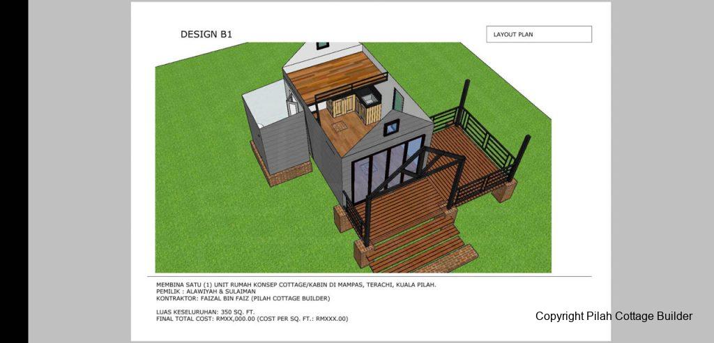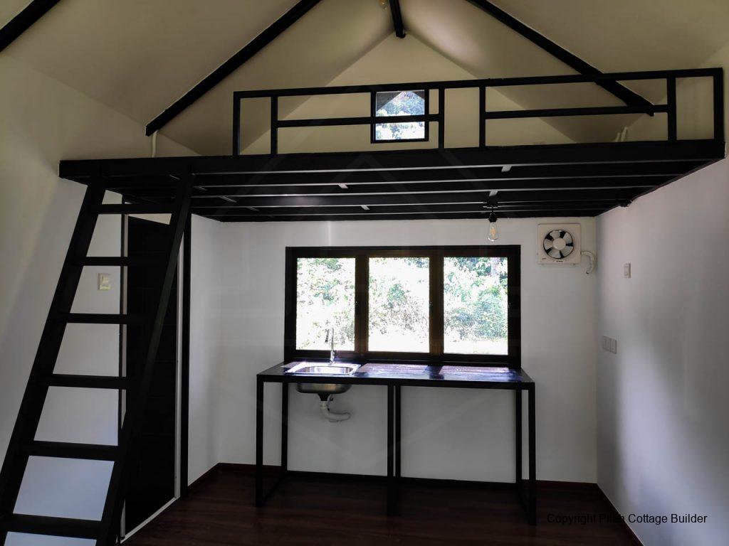 Rumah kebun jenis studio dilengkapi dengan loft/loteng. Mempunyai deck/balcony yang luas sesuai untuk makan/mengopi/beristirehat sambil menikmati suasana sekeliling selepas penat berkebun.