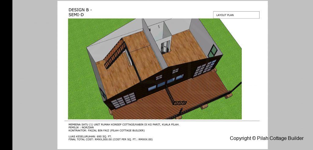 Pembinaan untuk rumah ke-2 dan ke-3 selepas berpuas hati dengan rumah pertama yang kami bina setahun yang lalu. Rumah jenis studio semi-D dilengkapi dengan loft/loteng. Mempunyai deck/balcony yang luas sesuai untuk makan/mengopi/beristirehat sambil menikmati suasana kampung.