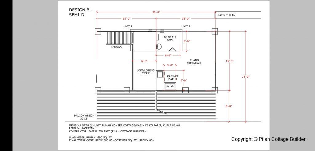 Keluasan binaan: 690sf