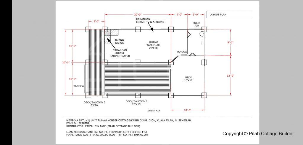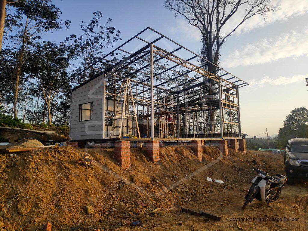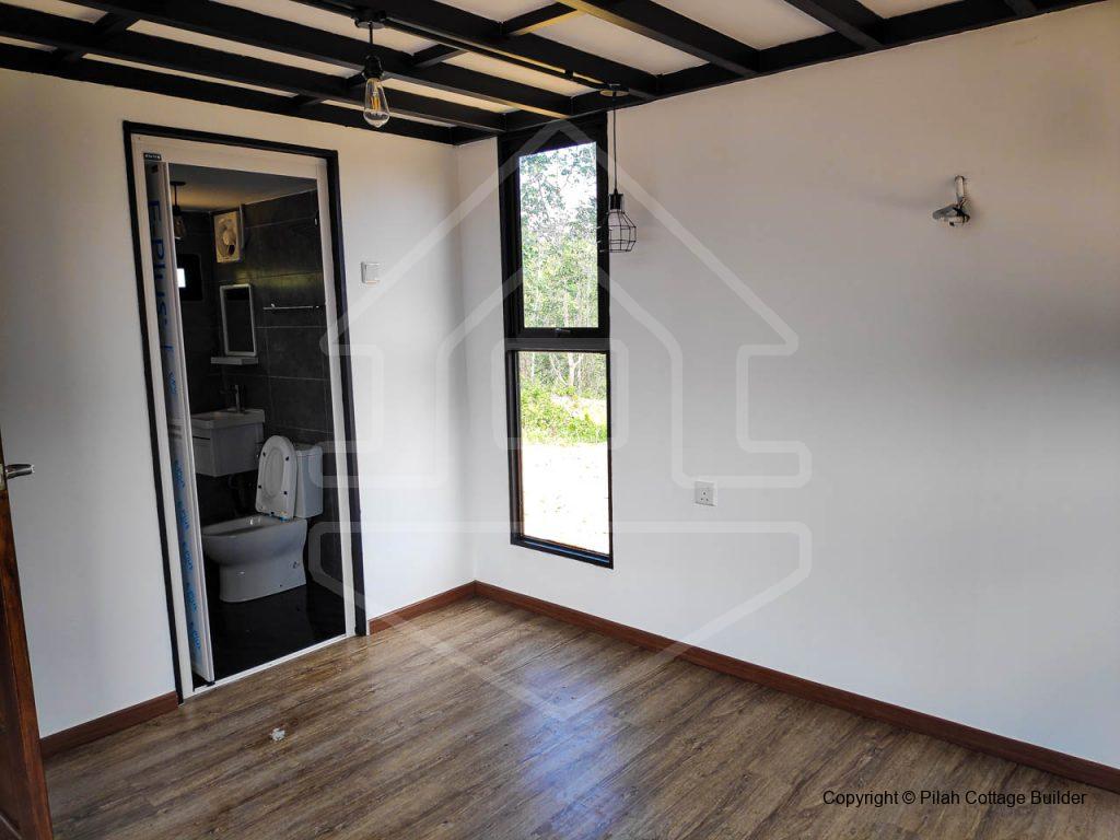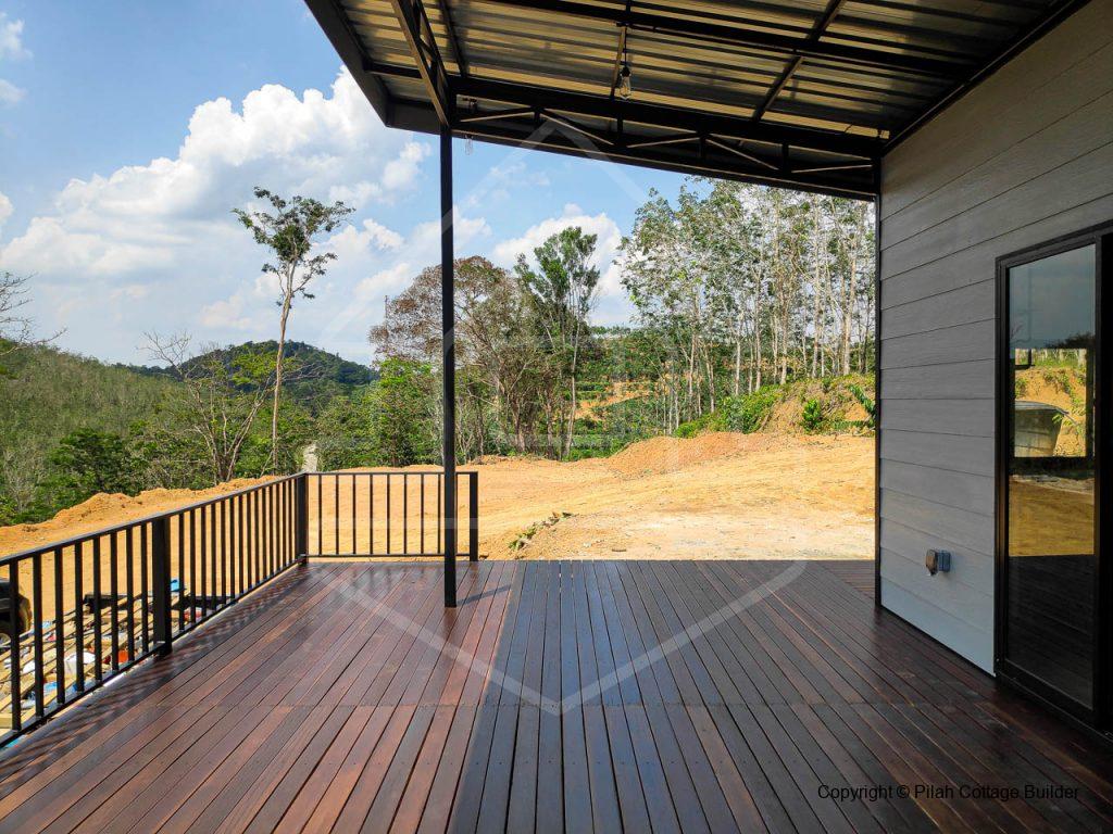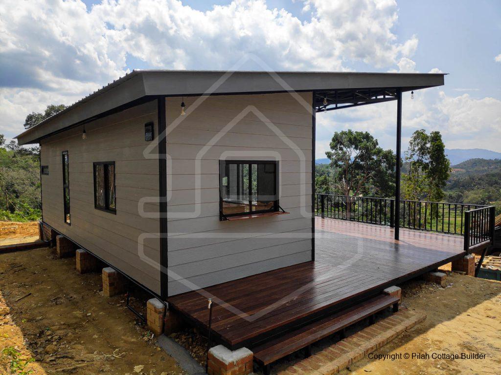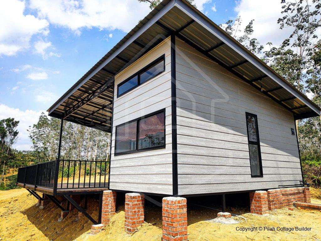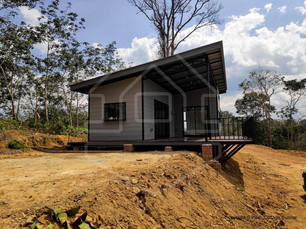 Rumah yang berkonsepkan ‘simple cabin’ ini terletak diatas puncak bukit dikelilingi kebun durian. Dilengkapi dengan 1 bilik tidur & 1 bilik air, loft/loteng, dapur dan ruang tamu yang selanjar. Mempunyai deck/balcony yang luas sesuai dengan konsep bersantai dan beristirehat sambil menikmati permandangan bukit-bukau dihadapan rumah.