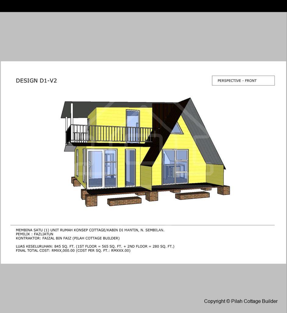 Rumah 2 tingkat ini dilengkapi dengan 2 bilik tidur, 2 bilik air, 1 ruang tamu, 1 ruang dapur dan 2 balcony (atas dan bawah). Pertama kali kami menggunakan warna kuning untuk dinding luar atas permintaan tuan rumah. Hasilnya… Agak unik dan menarik.