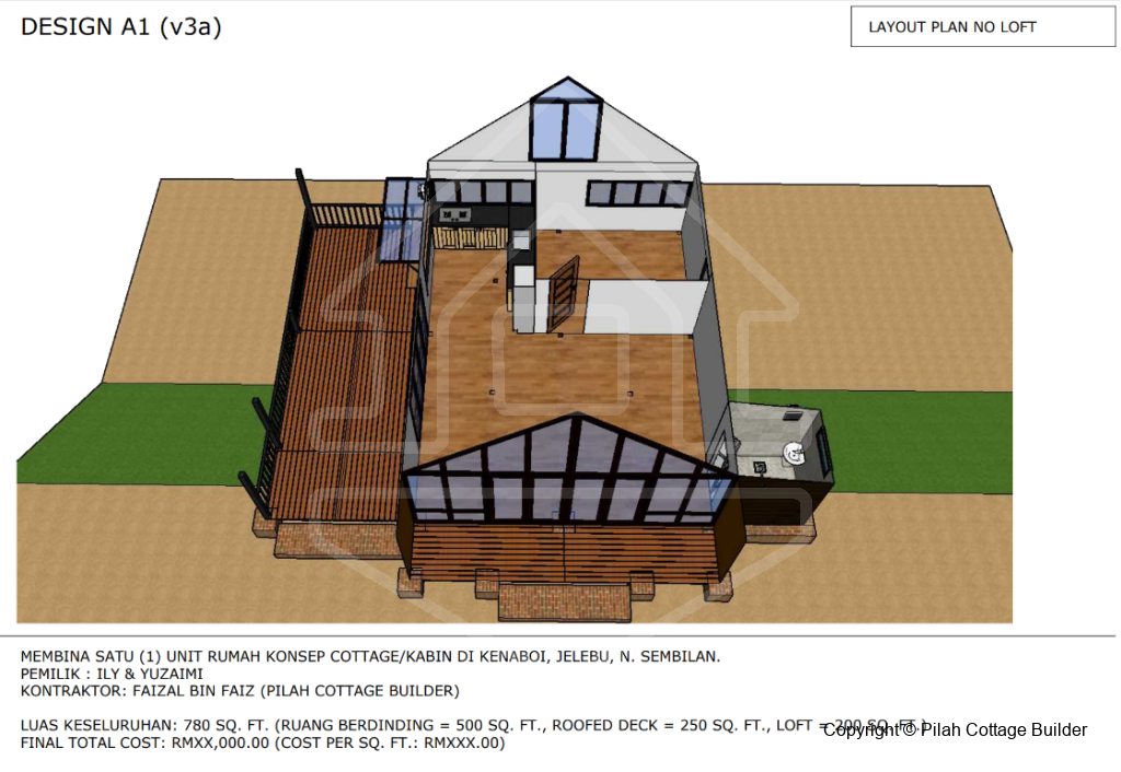 Keluasan binaan rumah: 30′ x 30′ = 900sf