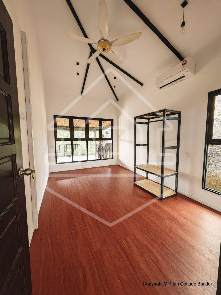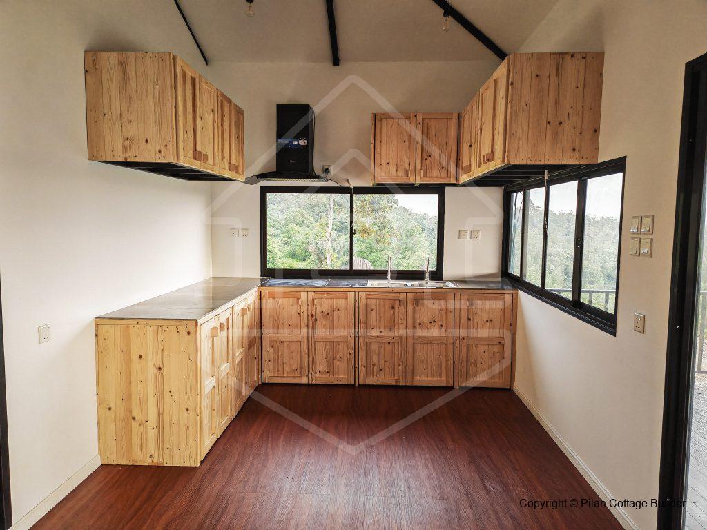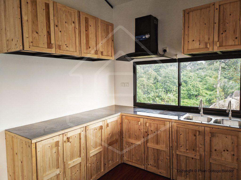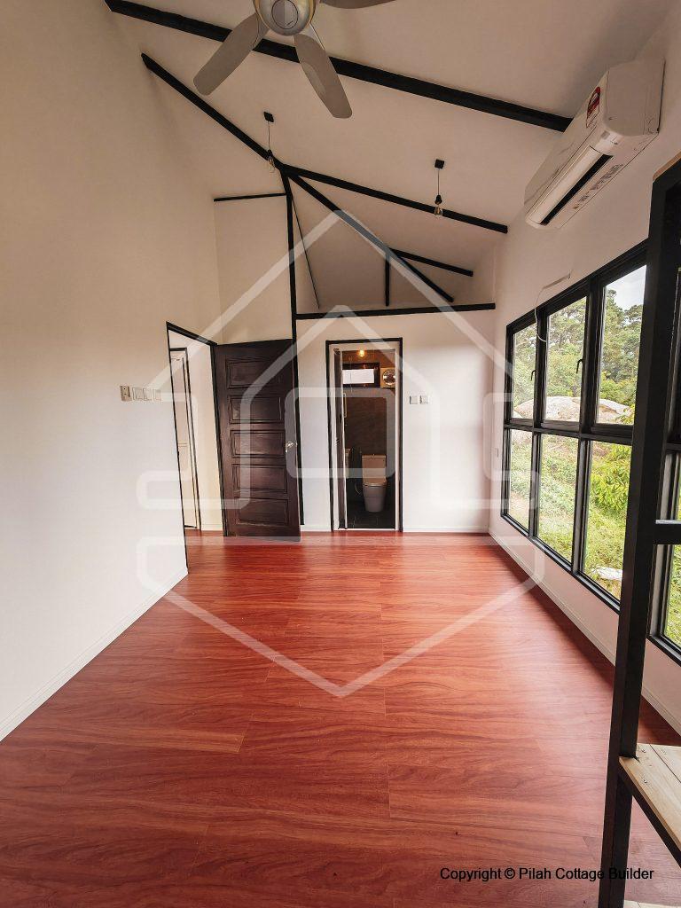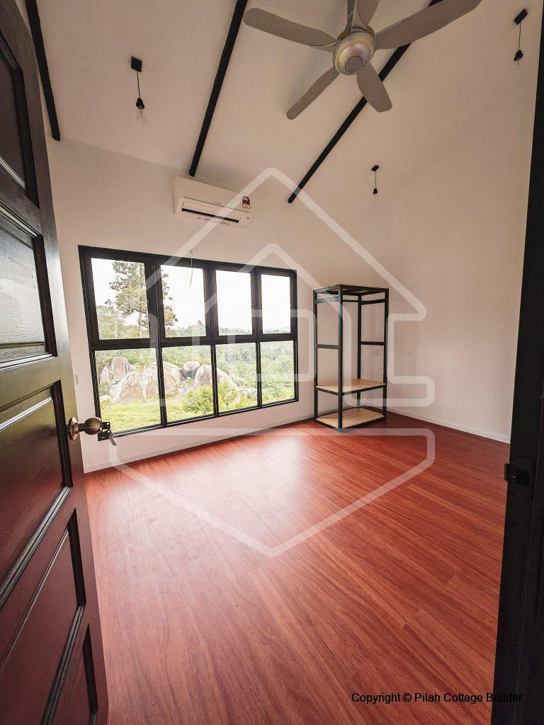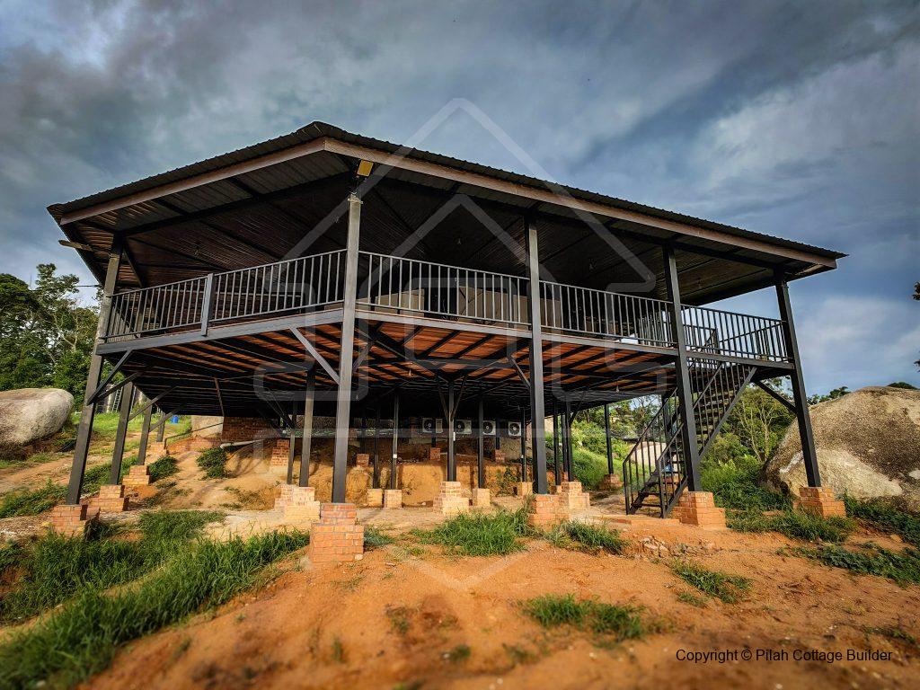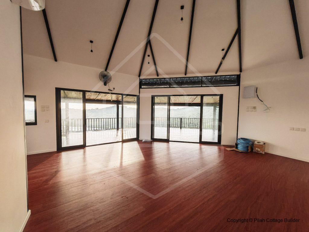 Kami membuat design yang berlainan untuk rumah ini kerana ingin memaksimumkan keluasan dan bentuk tanah yang berbatu. Keistimewaan design rumah diatas bukit ini membolehkan kami membina ruang deck/balcony yg melengkok, besar dan dapat melihat permandangan yang lebih luas. Rumah ini mempunyai 2 bilik tidur, 2 bilik air, ruang dapur dan tamu yang luas.