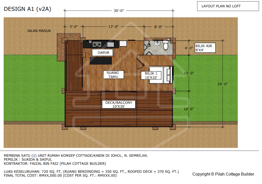 Keluasan binaan rumah: 720sf