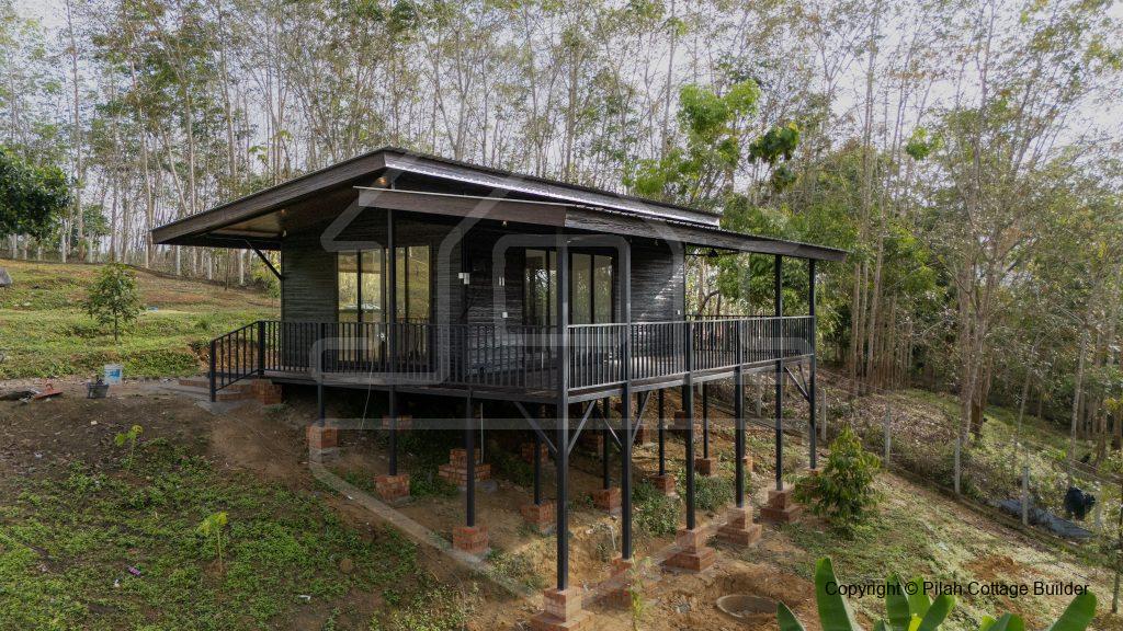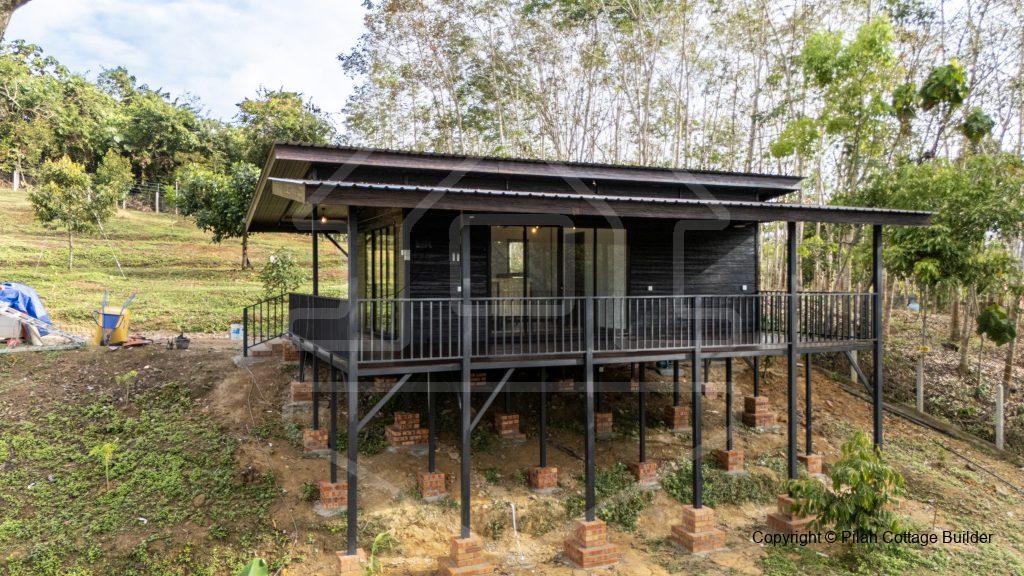 Rumah kebun ini dibina diatas tanah seluas 1 ekar. Rumah ini terletak dilereng bukit dan dikelilingi pokok durian. Dilengkapi dengan 1 bilik tidur, 1 bilik air, 1 ruang tamu/dapur dan dihadapannya sebuah deck/balcony yang cukup luas untuk seisi keluarga dan sahabat handai bersantai sambil menikmati durian!